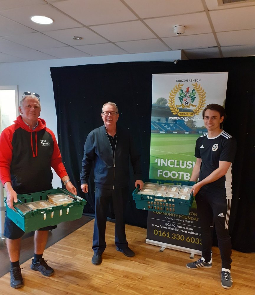 During December 2020 and Spring 2021, Curzon Ashton Community Foundation partnered up with The Veterans Food Company to help the local community. Every week for 20 weeks, 100 freshly cooked meals were prepared in the Kitchen at Curzon Ashton Football Club, and distributed to members of our community. Working alongside food banks and local charities, 2000 freshly cooked meals were sent to local families.
